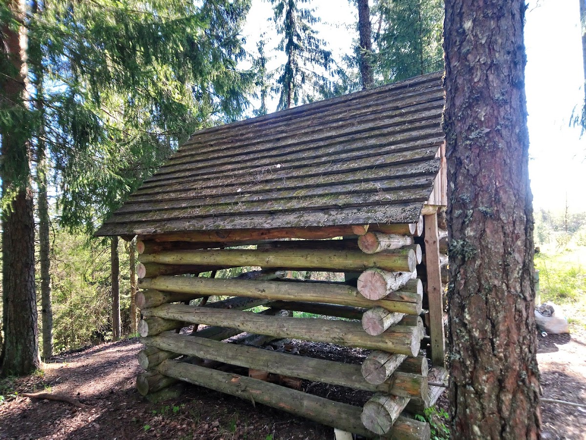 1 kaetud lõkkease, katusealune pinkide ja lauaga, 2 pinki, puukuur, mille lakas on võimalik ööbida, kuivkäimla, prügikast, metall trepp